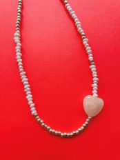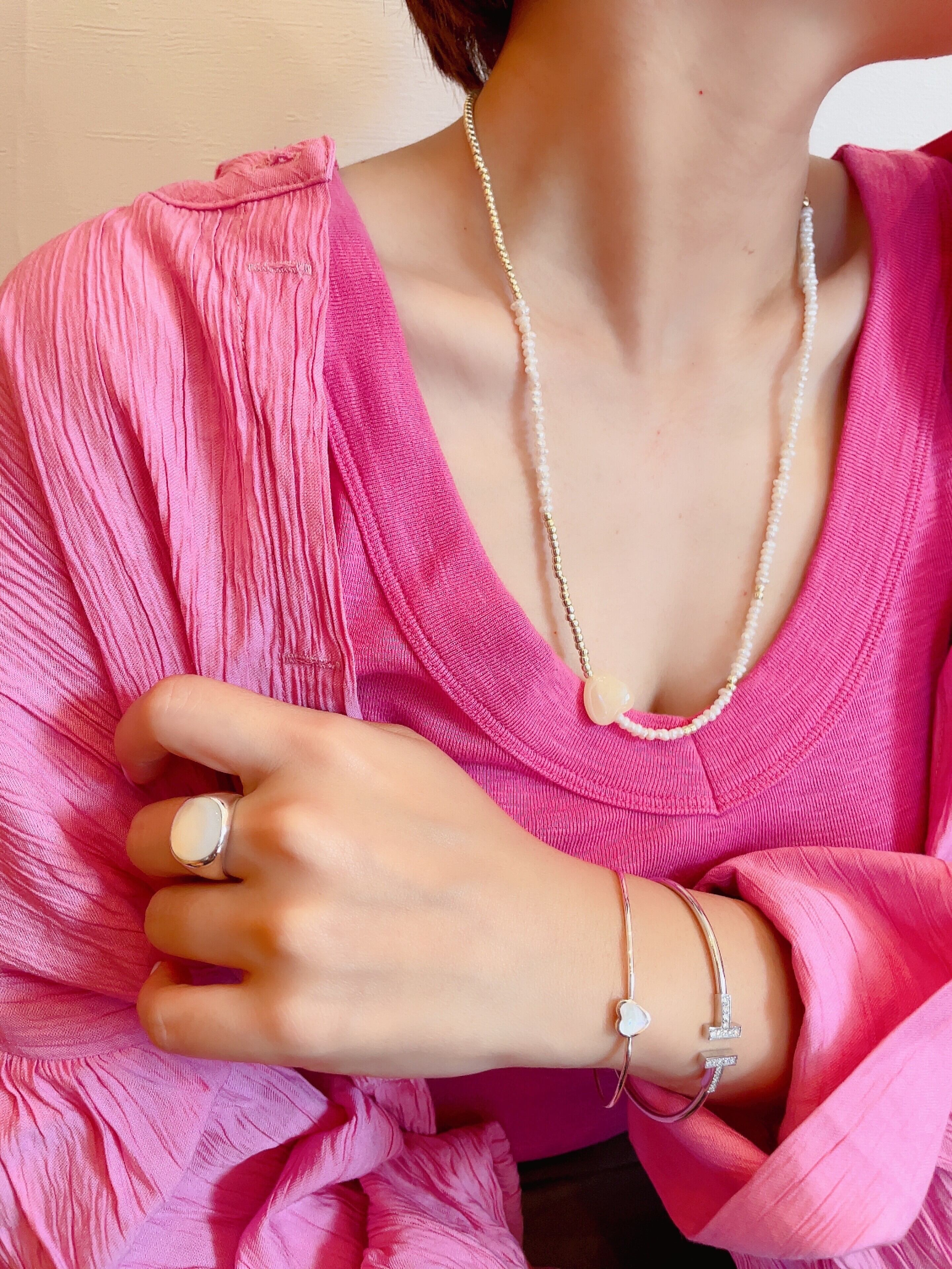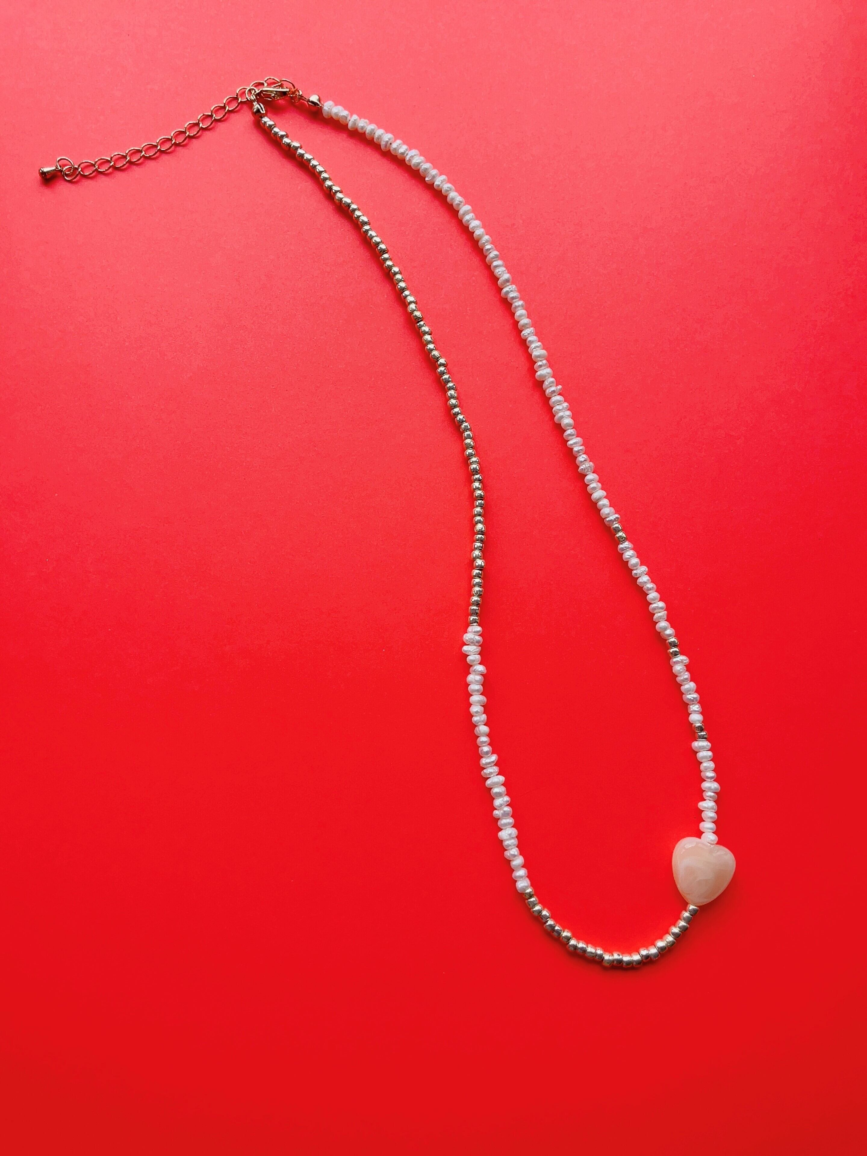 KARY.オリジナルアクセサリー ゴールドや白ベースのビーズネックレス ポイントに♡が、ちょこんと 少し長めのネックレスです